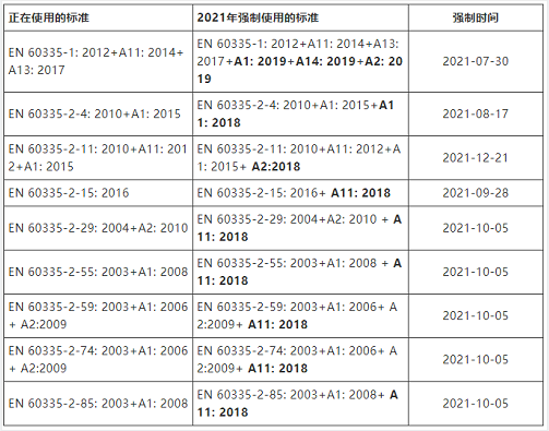 家電安規(guī) EN 60335 系列在 2021 年需強(qiáng)制的標(biāo)準(zhǔn)目錄如下: